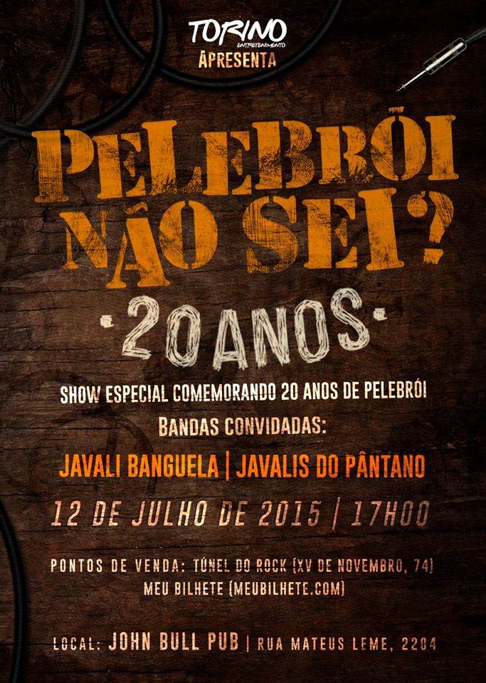 Dia 12 de julho em Curitiba, a banda Pelebrói Não Sei? comemora 20 anos de Punk Rock em um show especial juntamente com as bandas também curitibanas Javali Banguela e Javalis Do Pântano.